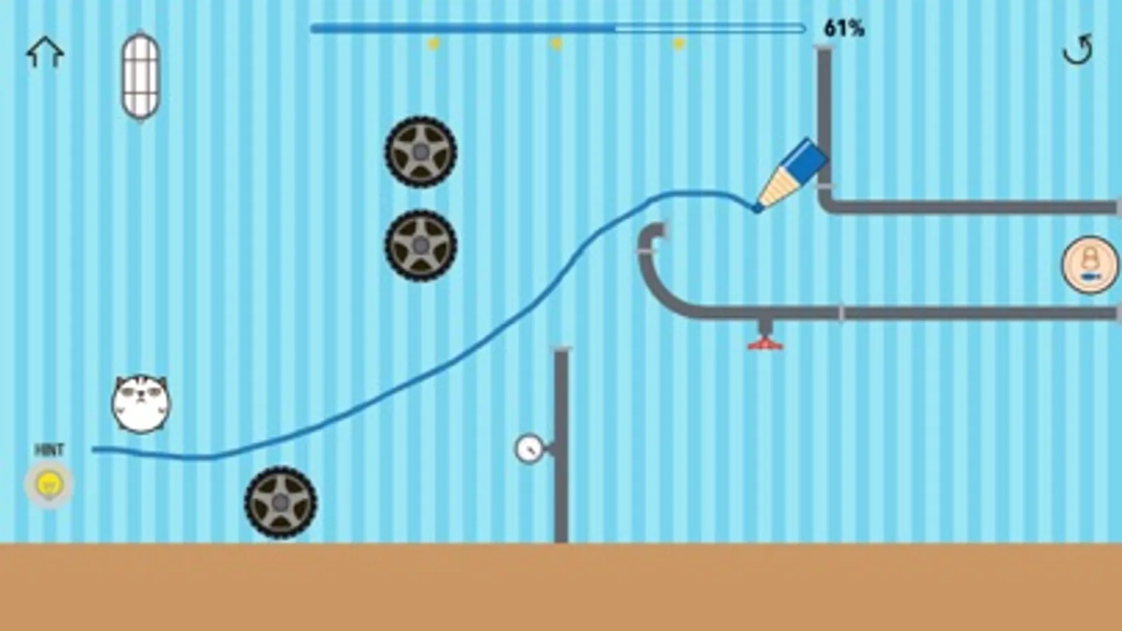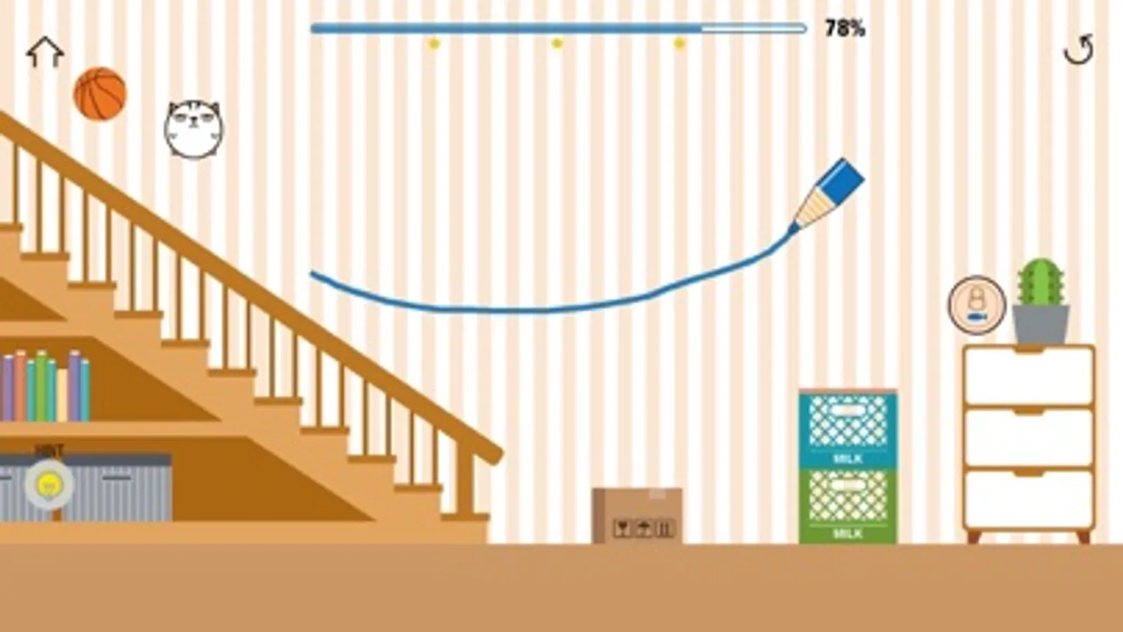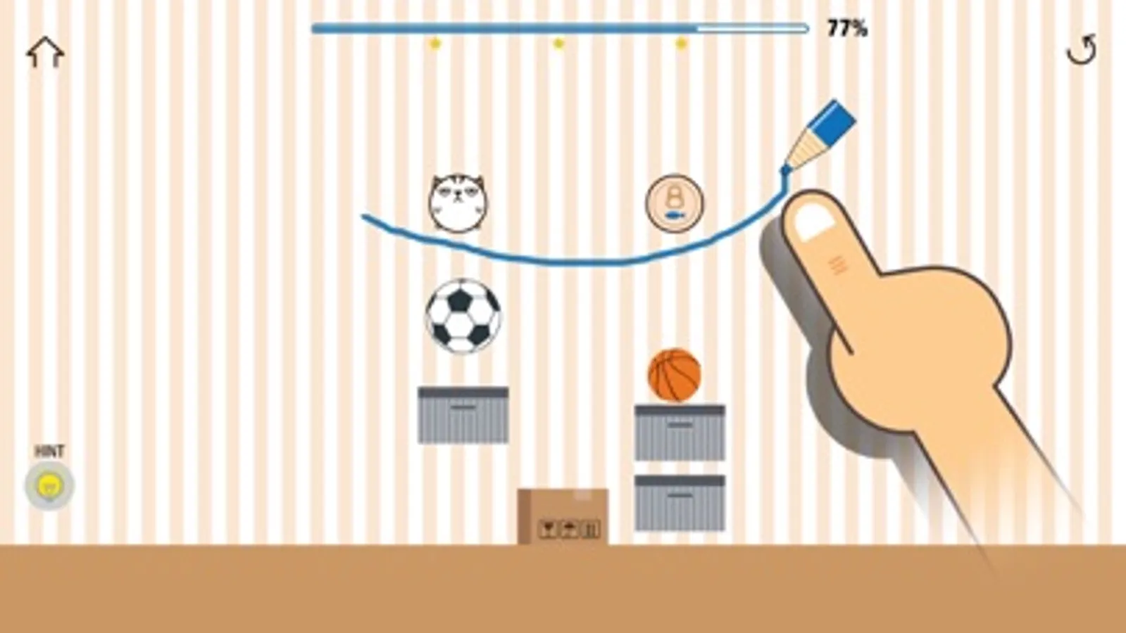 Your job is to draw a single or multiple lines to make the cat happy with the can.