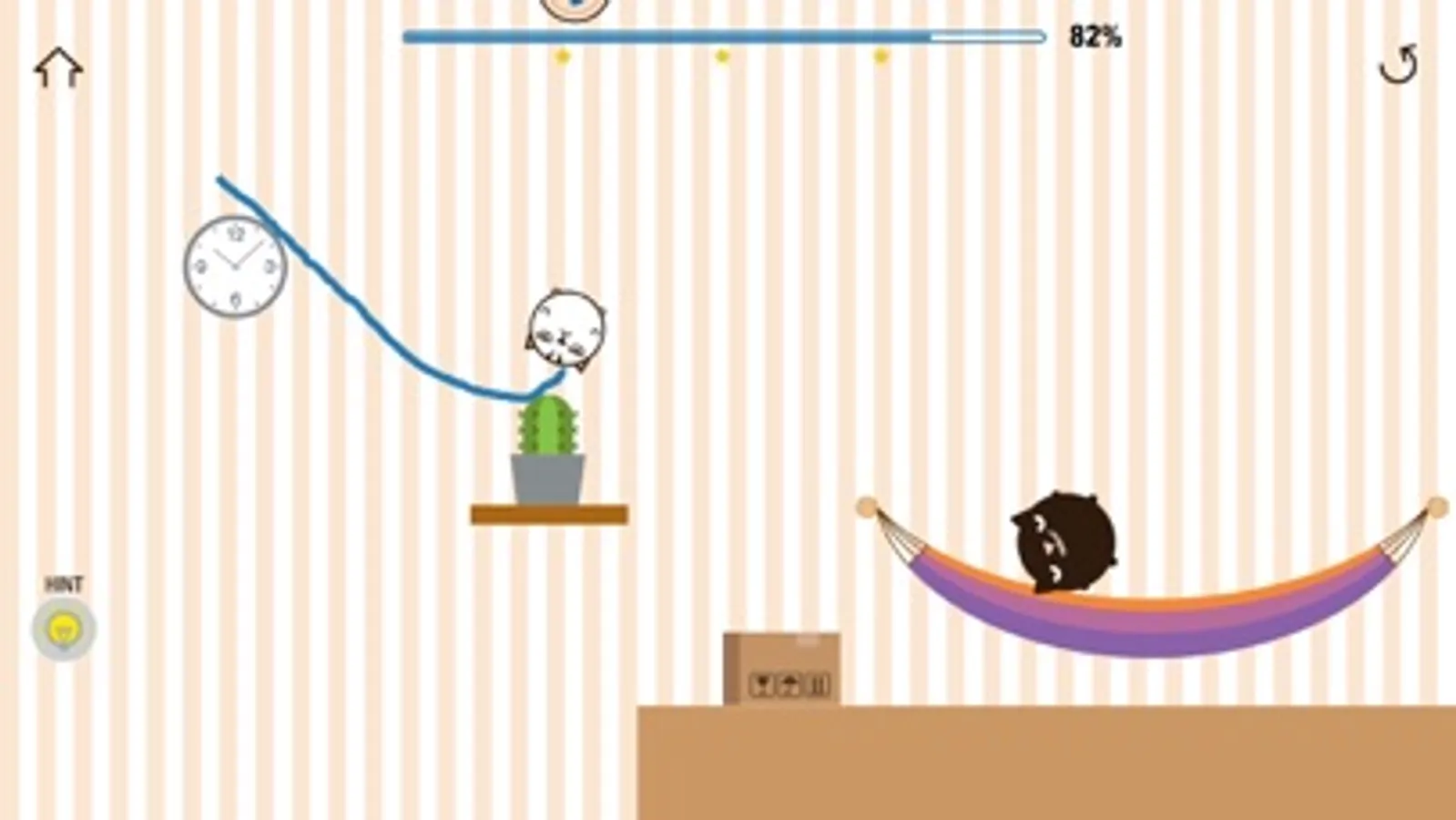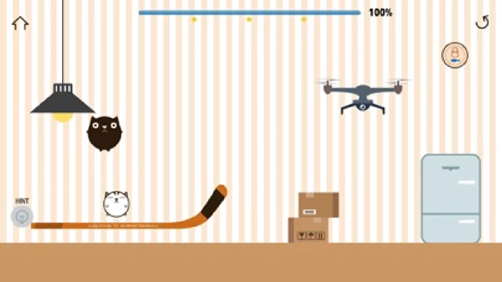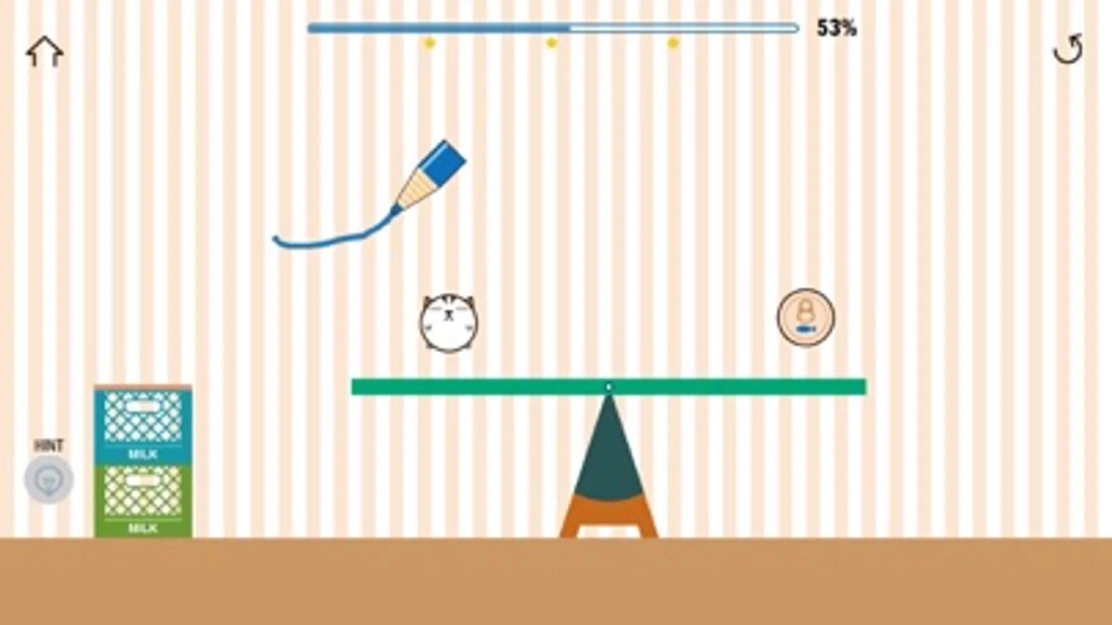 Your job is to draw a single or multiple lines to make the cat happy with the can.