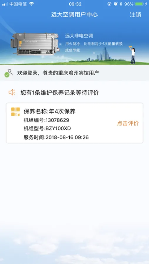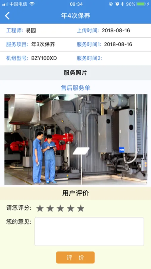 用户可以通过App查看年4次保养服务记录,并对服务工程师的服务打分。
