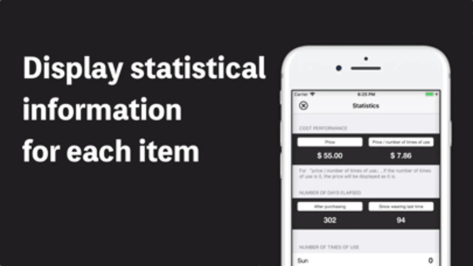 · Display number of times of wear, last wearing date, cost performance information etc. for each item