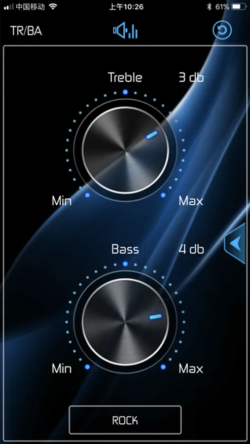 The app also features audio control such as treble/bass/volume level control of the connected radio.