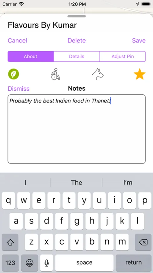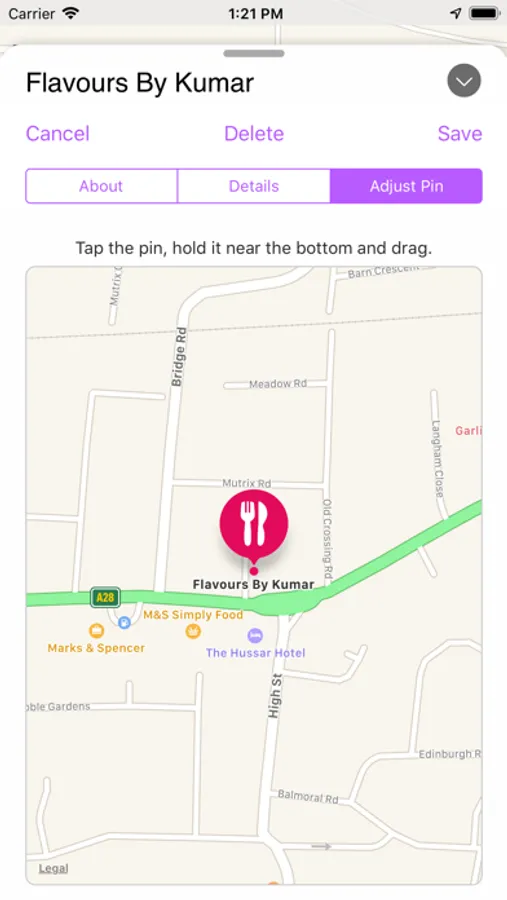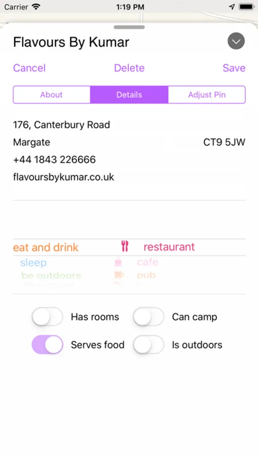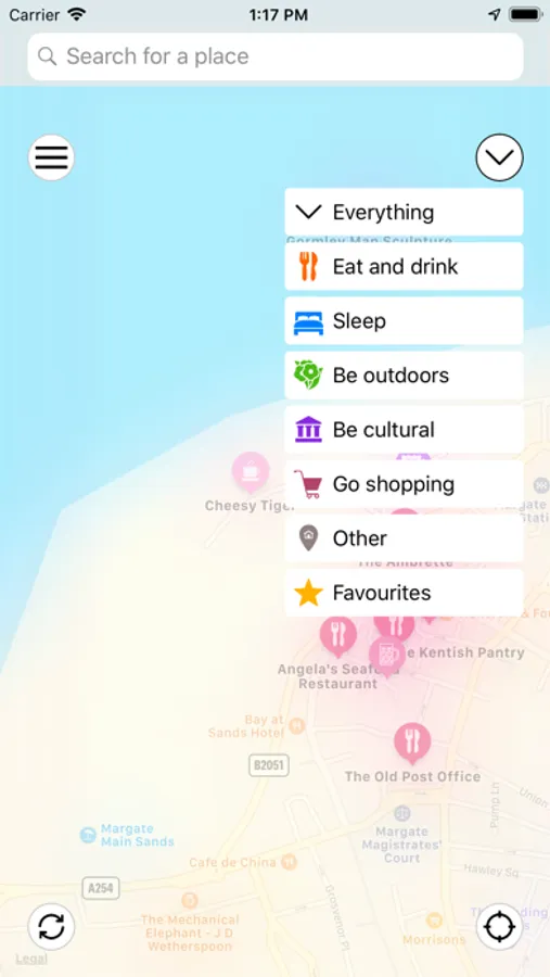 If your map is looking crowded, filter your pins by type - maybe you're looking for somewhere to stay the night, or just a cup of tea? You can customise your filter menu to just include the types of things that you're interested in. No point having a filter for hotels if you never stay in them!