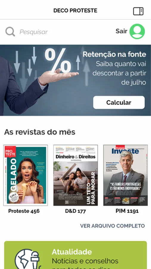 Vantagens da aplicação DECO PROTESTE Revistas: