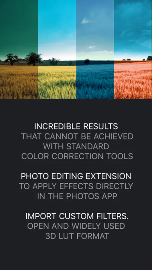 • Complex color correction of photos with ready-to-use effects based on 3D LUT filters.
