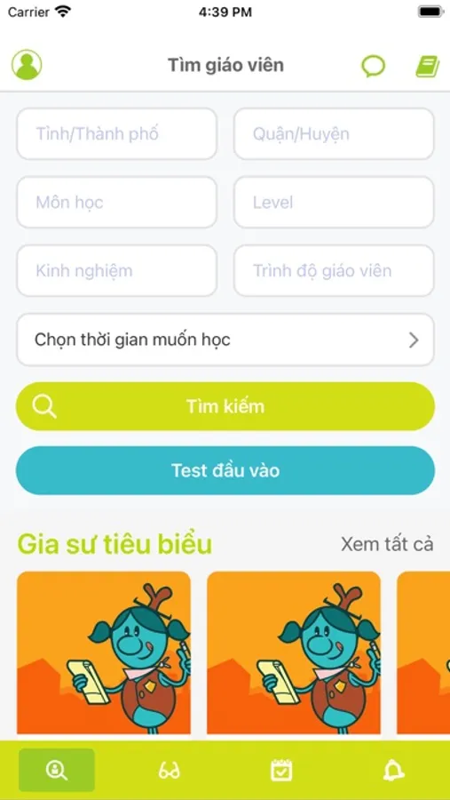 - Tìm kiếm gia sư phù hợp với nhu cầu, vị trí địa lý, trình độ, mức lương