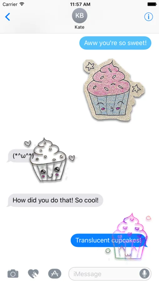 More than a dozen handmade sugary expressions for your iMessage conversations. Available in the regular opaque kawaii version and now enjoy the new translucent stickers so nothing gets covered by the frosting!