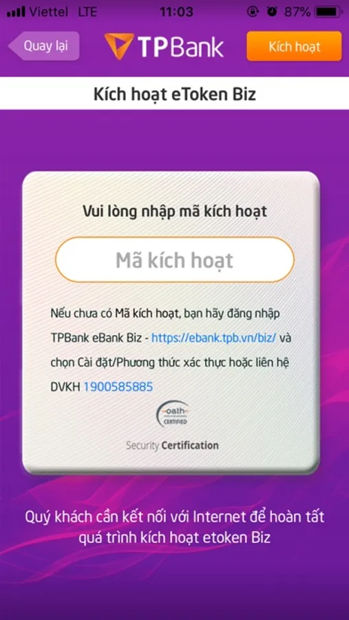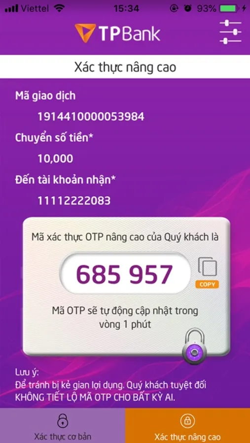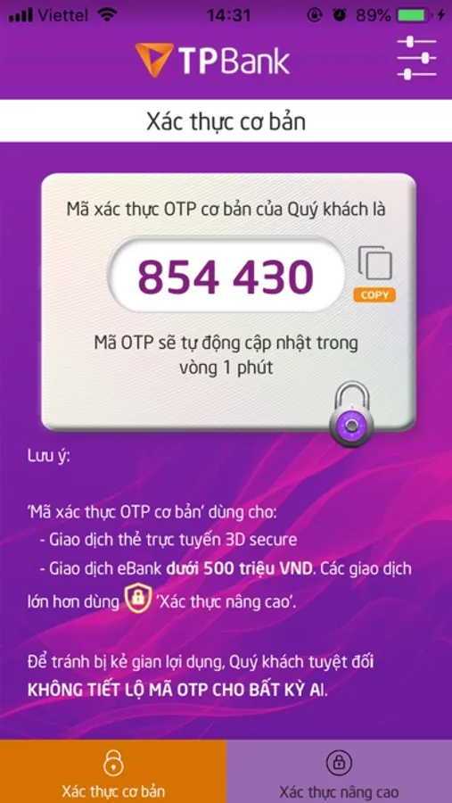 TPBank eToken is a security application installed on mobile devices to get OTP code and attach only to the customer's eBank login account. Being evaluated as the preeminent authentication method replace traditional OTP via SMS, TPBank eToken will definitely bring customers a completely satisfied experience with the following outstanding features: