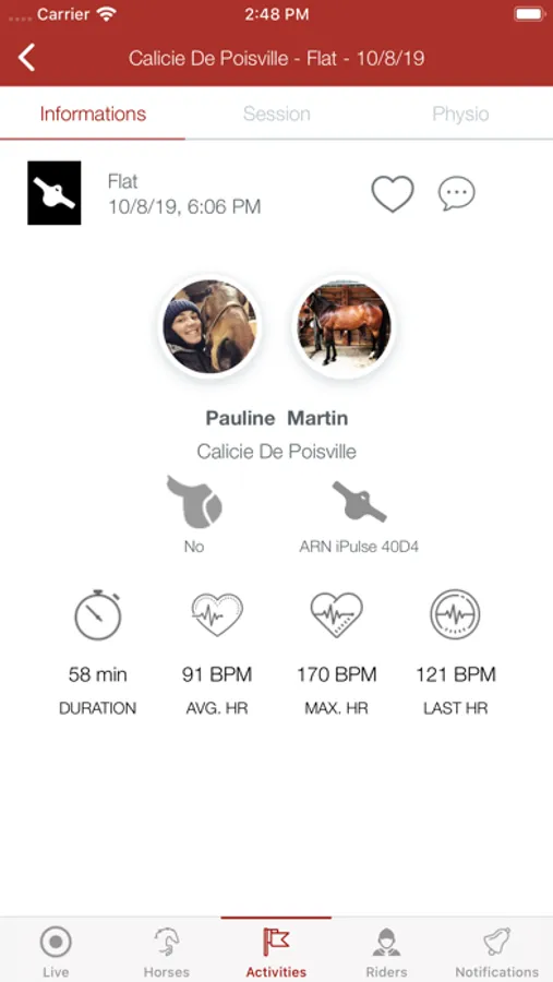 An application that can be used with both products in the CWD iSport range simultaneously or not. Both products, iJump and iPulse will both allow you to analyze your riding sessions objectively.