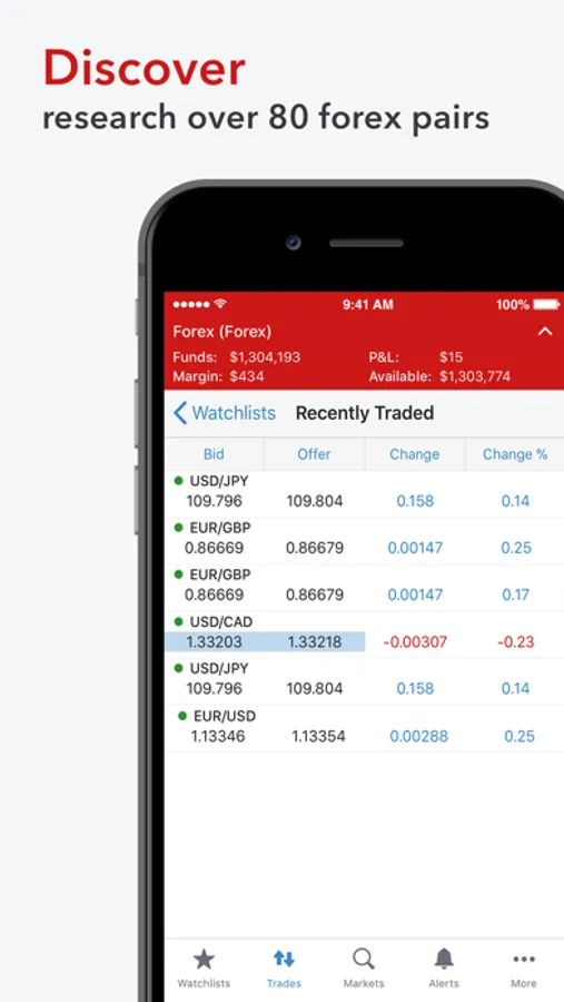 The IG app features live, on-the-go trading on an extensive selection of global currencies – at highly competitive prices. Plus a range of features for active traders, such as charts, news, alerts, analysis tools and more.