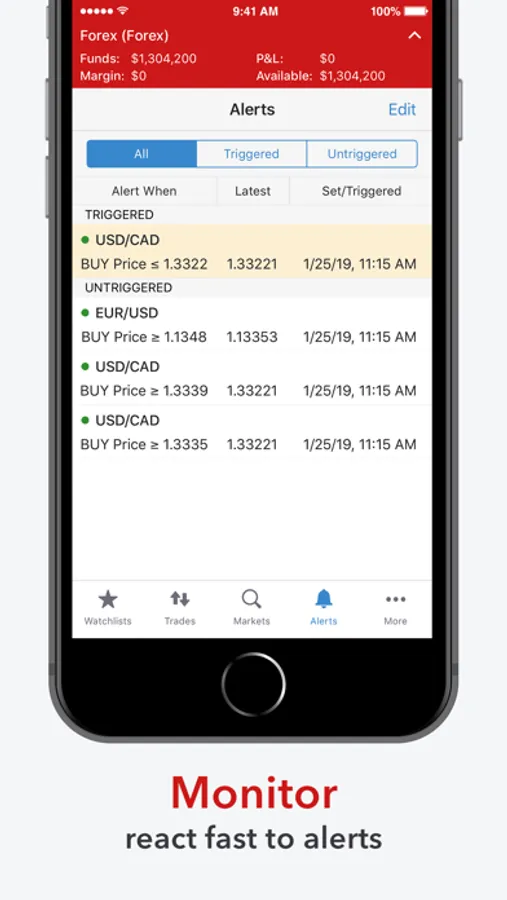 • Set price alerts and react immediately to trading opportunities