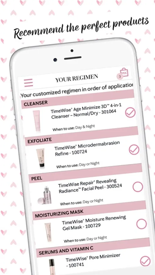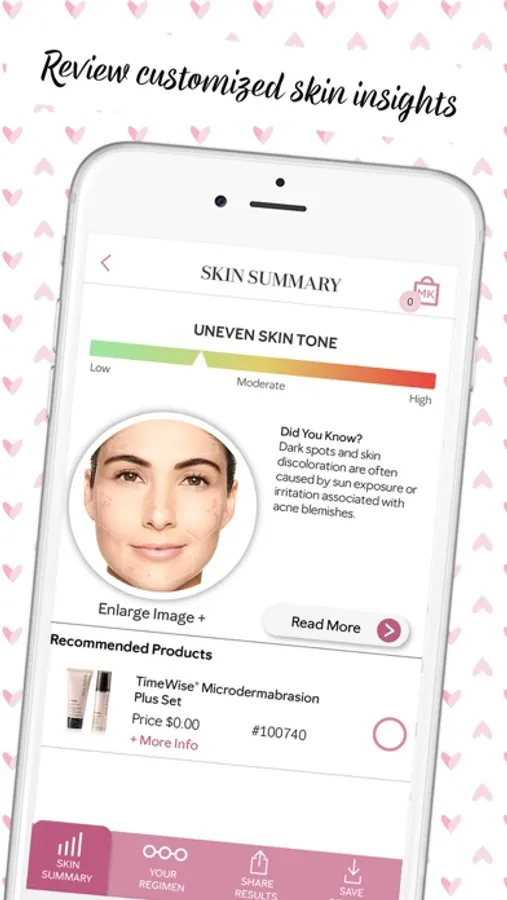 • Compares your skin against database of over 80,000 facial profiles to recommend the best Mary Kay® products.