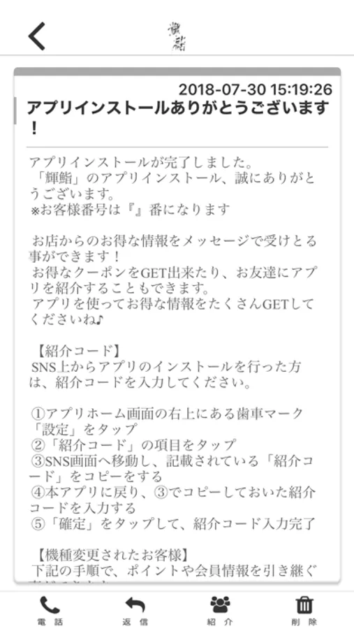 輝鮨のアプリをSNSを通じてお友達に紹介する事ができます。