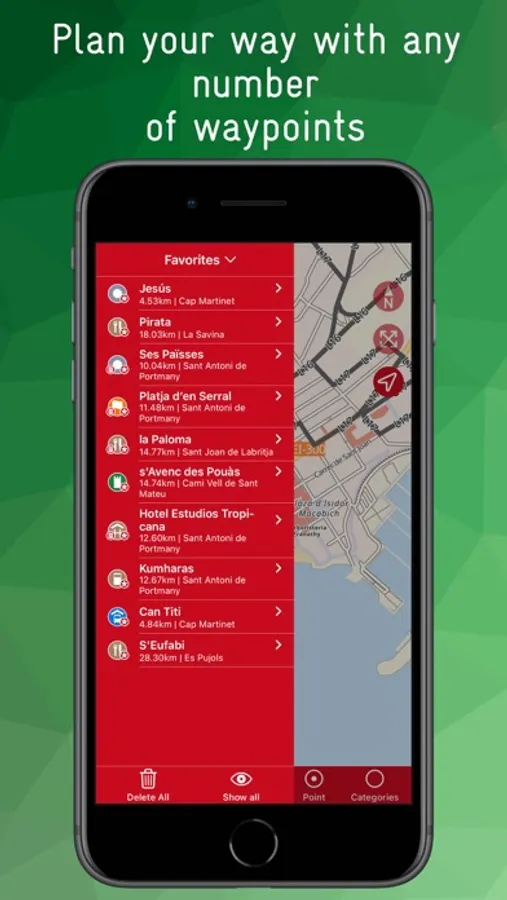 An integrated database allows you to search for POIs as well as a large number of streets, towns, villages, districts, etc. The search can be filtered by category and/or distance.