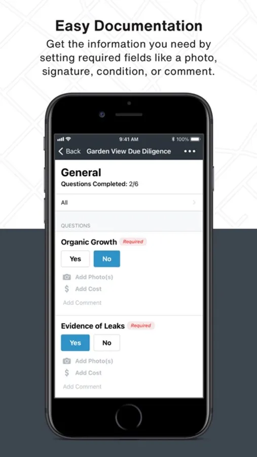 Easy Documentation: Get the information you need by setting required fields like a photo, signature, condition, or comment.