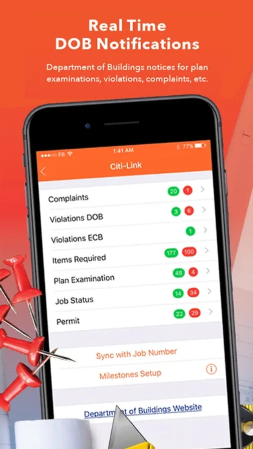 Receive push notifications from the NYC Department of Buildings, as well as from the Citiscape app itself. With Citiscape, you are always aware of new messages, job status, complaints, violations, attached documents and much more.