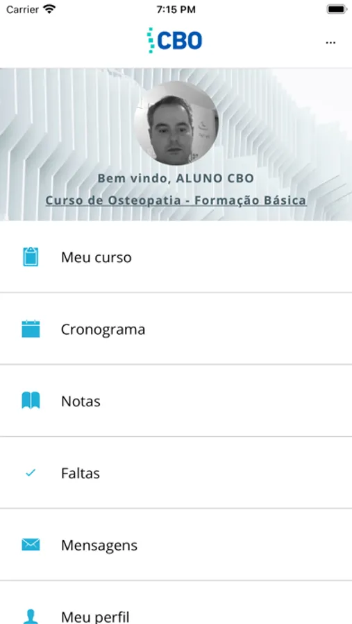 App destinados aos alunos e professores do CBO (Colégio Brasileiro de Osteopatia), nele o estudante conseguirá verificar os dias de aula, notas, faltas, verificar informações do seu curso e receber mensagens. Já os professores poderão incluir as faltas e notas.