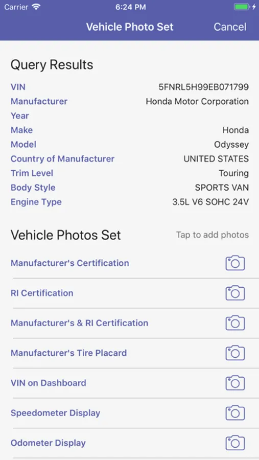 • Convenient tool to scan the VIN barcode in the driver-side door and decode it into vehicle details