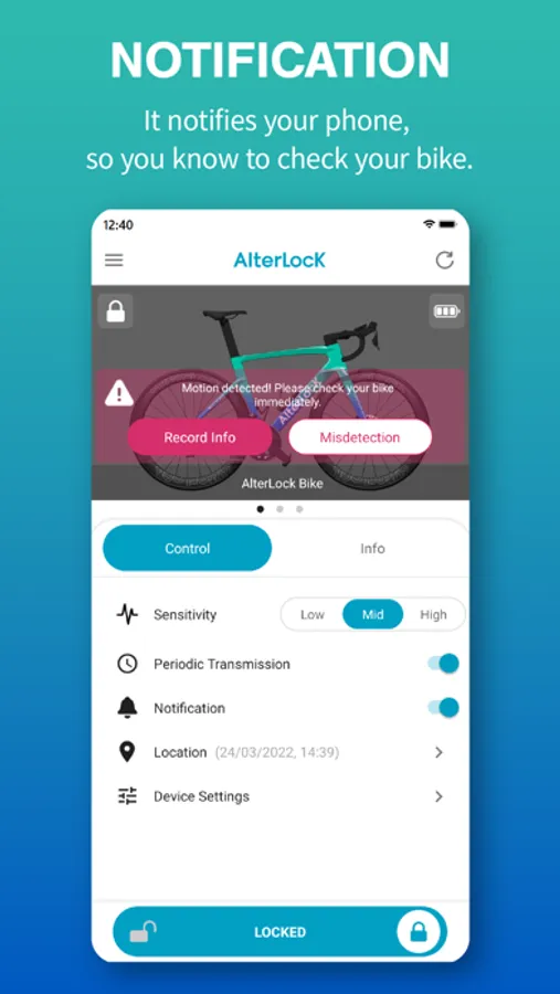 When AlterLock detects a vibration, it notifies your phone, so you know to check your bike.