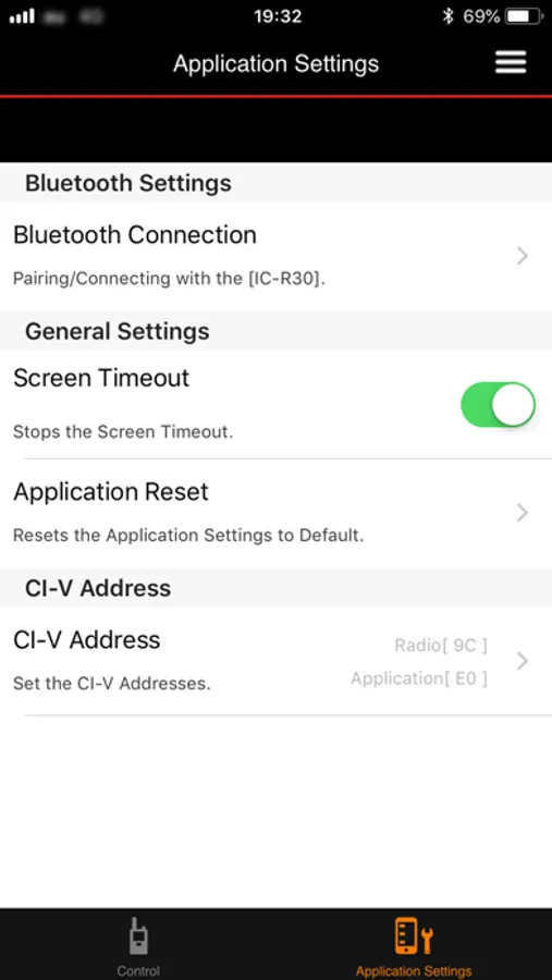 - Confirm the IC-R30's Serial port function is set to"CI-V (Echo Back OFF)"