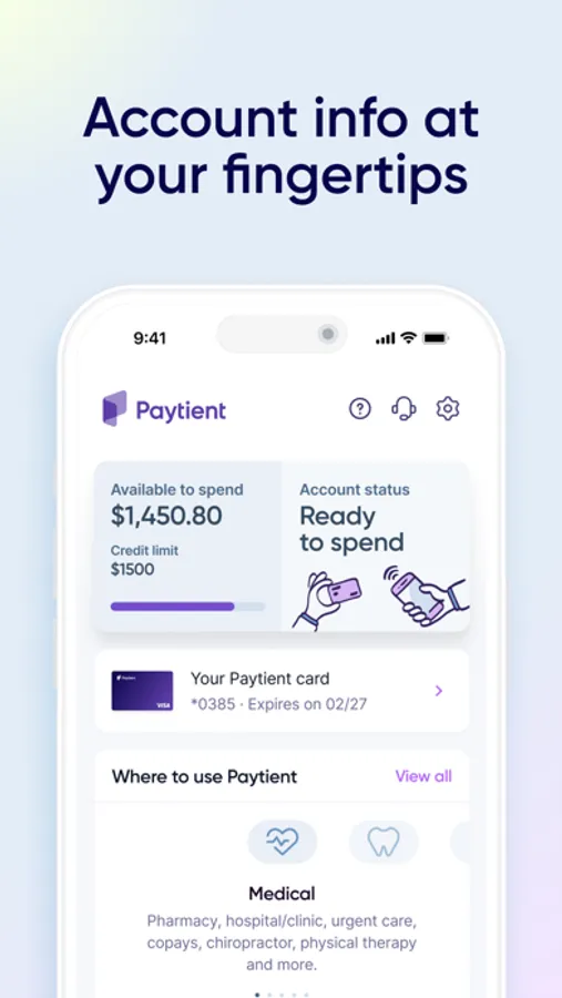 • Easily access and copy your card info to pay for care with Paytient at home or on the go.