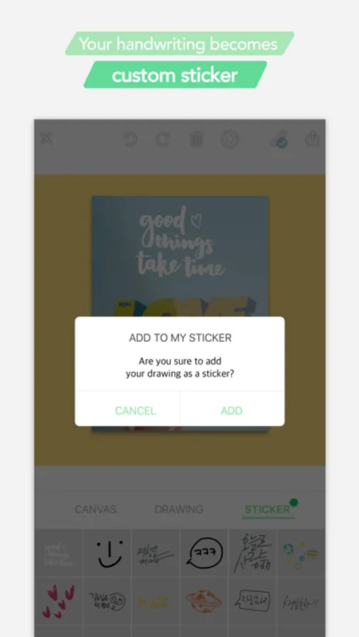 3. STICKER: Save your drawing as stickers! You can share the sticker itself as well.