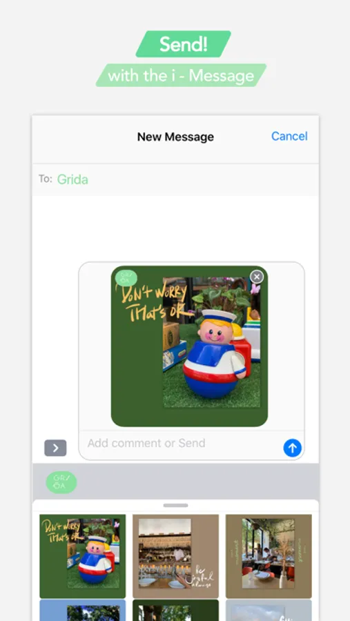 4. SHARE: Share your post! Grida post can be sent in i-Message, too!