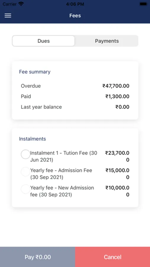 View your ward's coursework, online class links if any, view and submit their assignments through the app. Also view their attendance, class diary, bulletin and pay the dues. Get automatic notifications for attendance, bulletin, diary entries and overdue amounts. Send a message to the teachers through the app.