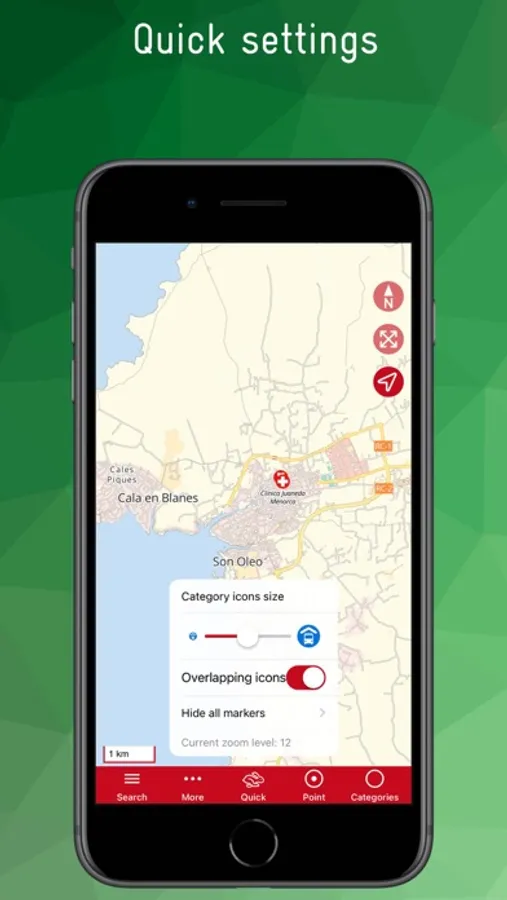 POIs are grouped into categories and can be displayed as layers. For example, you can display all restaurants, public transport lines, banks, hiking trails, charging stations and doctors on the map. The size and overlap of the icons can be adjusted to improve clarity.