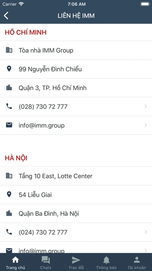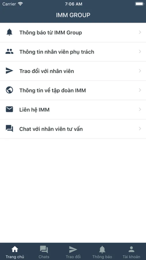 Ứng dụng riêng của IMM Group hỗ trợ trao đổi thông tin bảo mật giữa IMM Group và khách hàng.