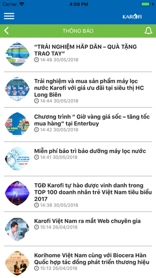 - Nhận thông tin & thông báo từ karofi