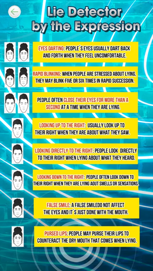 This app is able to track the eyes movement, lips and face shape to compare with nine different expressions that unconsciously make people when they lie.