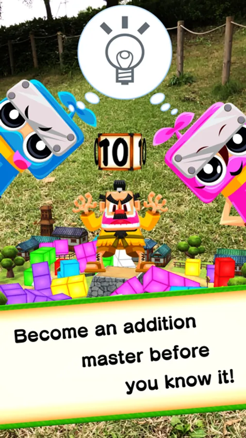 Part 2 of the top ranked kid’s app in 107 countries, Math Ninja AR. Add the number of boxes to match the given number. Compete with friends and family in multi-play mode.