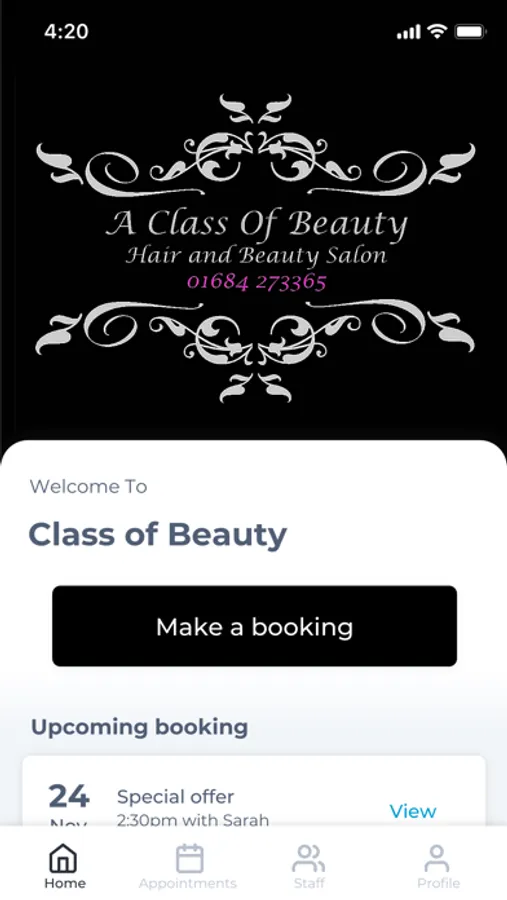 The Class of Beauty app makes booking your appointments and managing your loyalty points even easier. You're just a few taps away from feeling good and looking great!