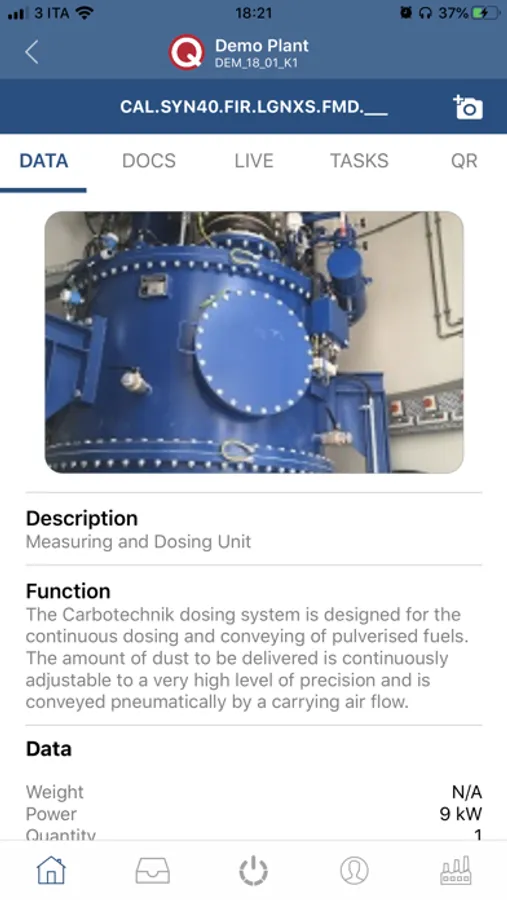 Mi-TAG App is the application part of MOSAICO Suite that permit to have insight to each the plant components.