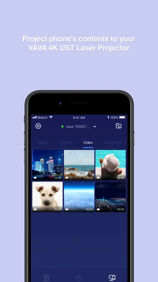 1. Project videos, music, pictures, documents on your phone to the device (push function).