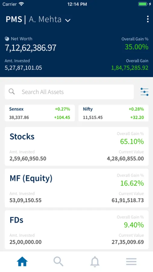 • Real-time view of your Portfolio valuations across asset classes including Stocks, Mutual Funds, Bonds, FDs, & others