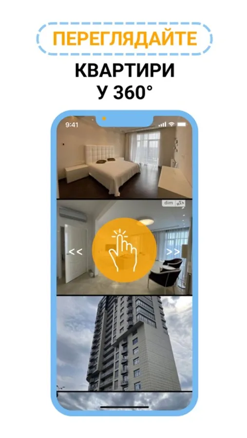 Завдяки відео та панорамним фото 360 ви можете повністю зануритися в інтер'єр приміщень об'єкта, що вас зацікавив, і тим самим вивчити найдрібніші особливості приміщень. Таким чином можна зробити віртуальний тур по об'єкту прямо з вашого пристрою. Дивіться «Перевірені квартири» у форматі 360.