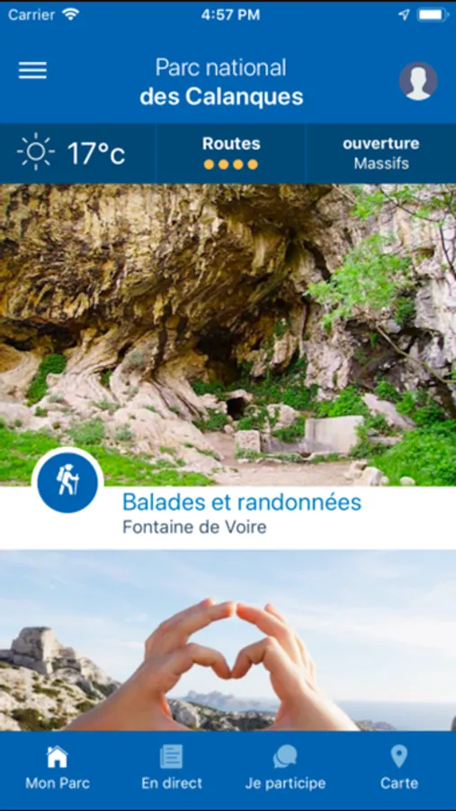 - De retrouver des infos en direct : accès aux massifs, ouverture des routes ainsi que toutes les actualités et bons plans aux Calanques !