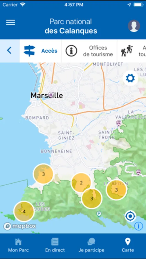 L'application Mes Calanques permet à tous les citoyens de participer à la vie du Parc national. Elle propose :
