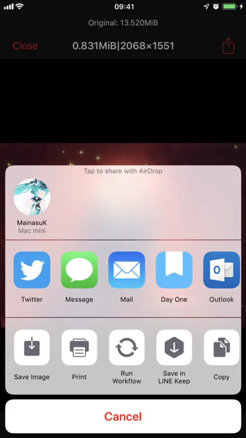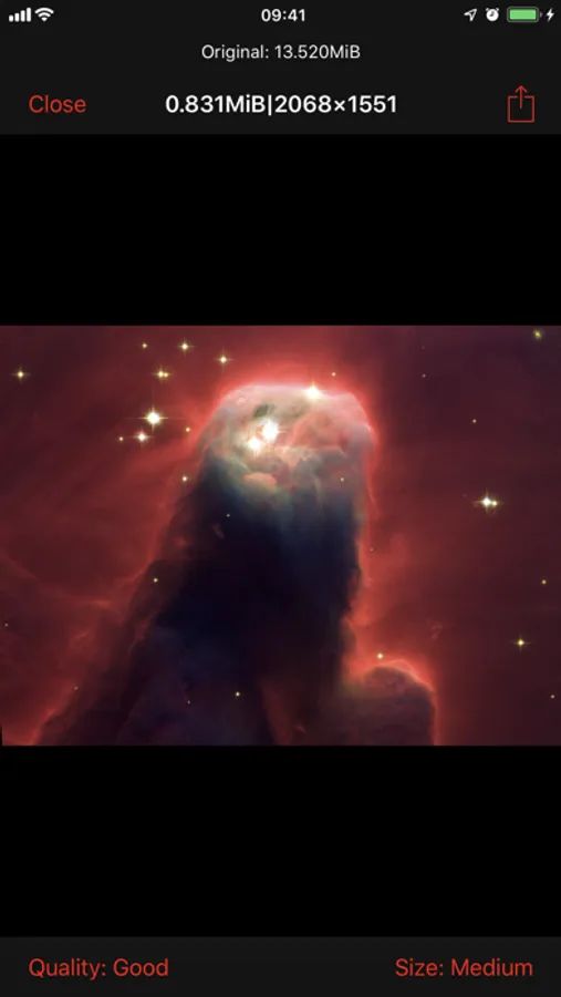 Select your photo and adjust the compression parameters then use sharing action export compressed photo. Also supports photo compress action in other apps when use photo sharing action.