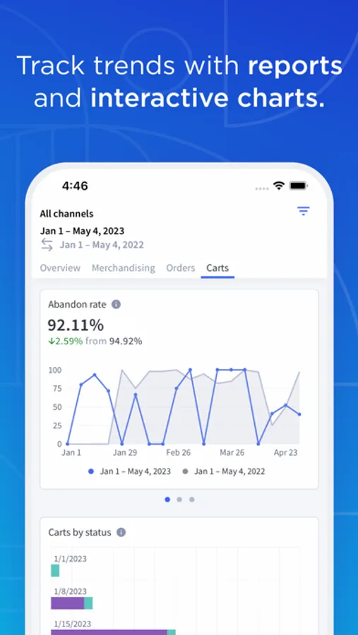 - Compare previous time period trends right from the store performance dashboard