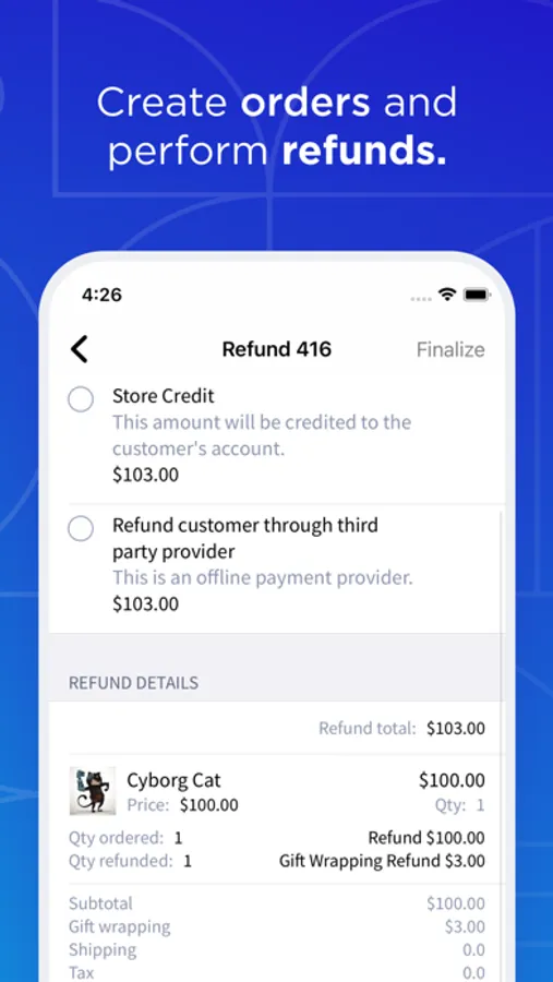 - Accept payments for orders, and perform refunds