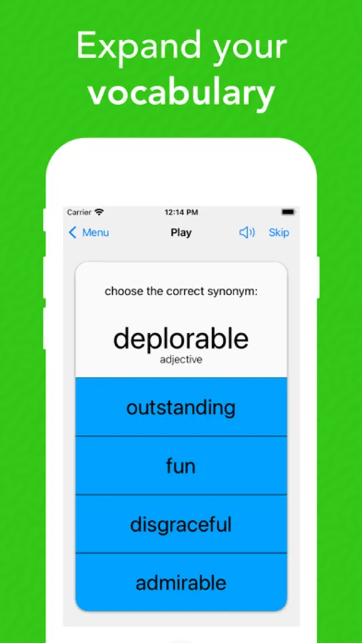 The simple, clean interface allows you to concentrate on learning and progressing swiftly, without any annoying distractions. The app uses a special algorithm centred around the scientifically proven approach of spaced repetition to determine which words you aren’t so confident with, allowing it to prioritise the order in which words are served. This allows you to quickly learn new words and grow your English vocabulary whilst also reinforcing the meaning of words that you already know.