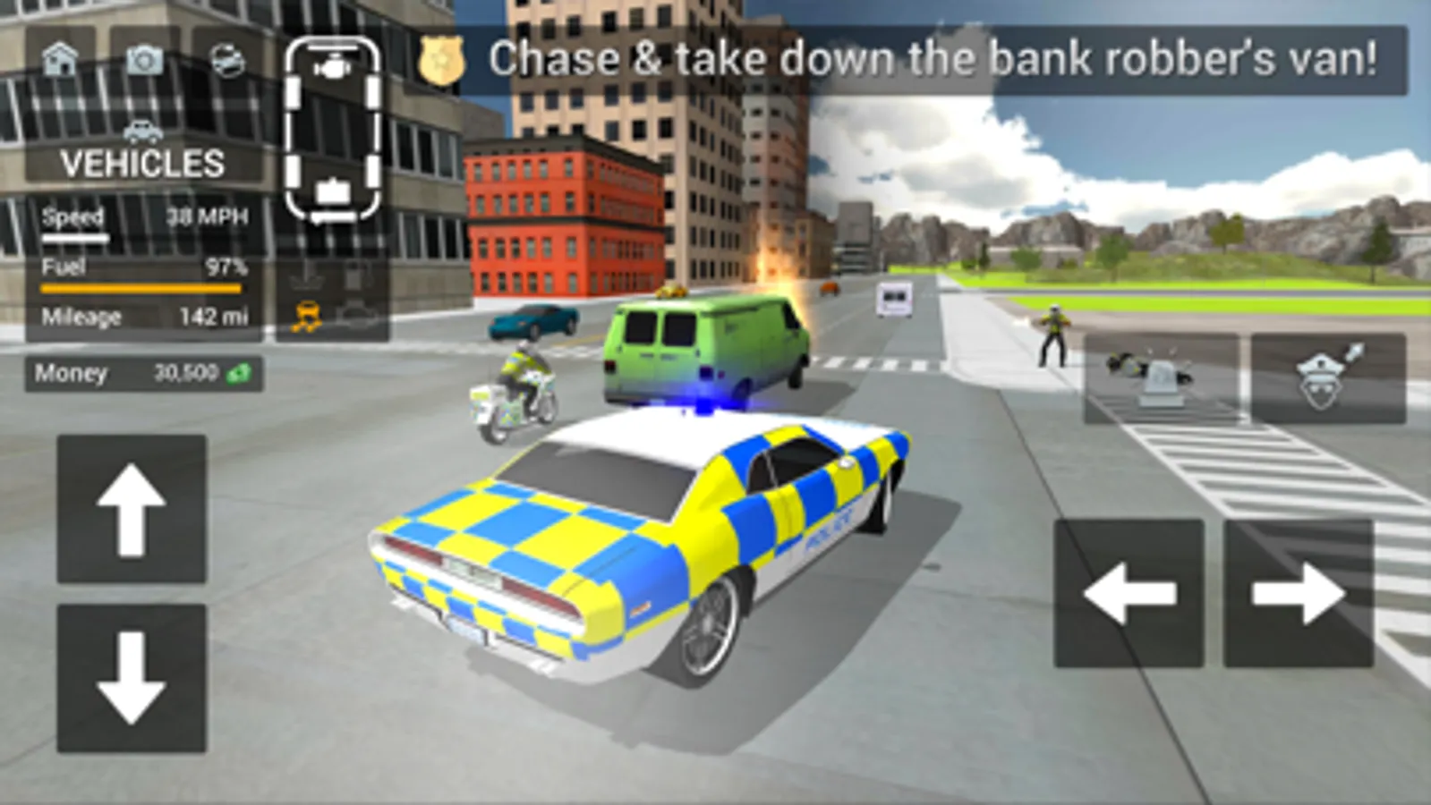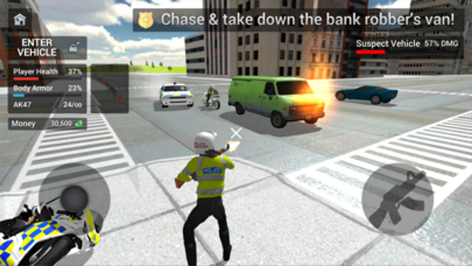 Watch out for your health and your vehicle's stability, be sure to look out for garages and hospitals around the city for police vehicle repair and player health packs to keep you going longer in the line of police duty.