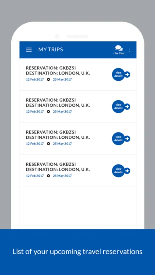 Quickly review all of your upcoming travels, including a detail view of each travel service within your bookings