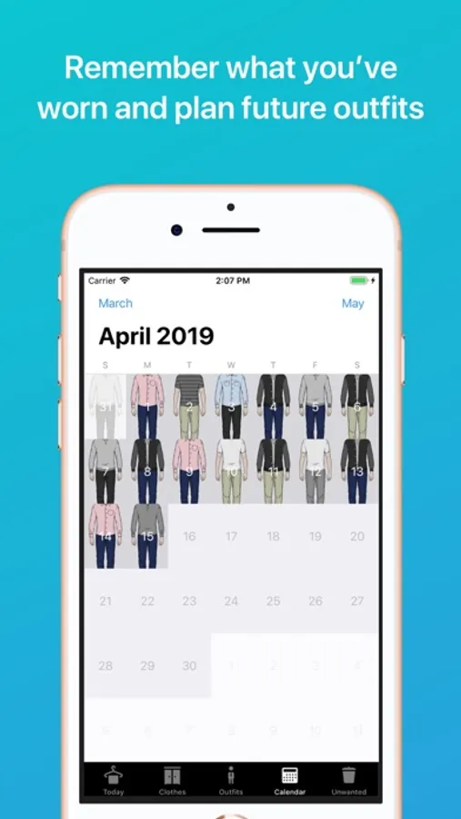 Plan what you wear. The calendar gives you a view of what you've worn in the past, and if you're going on a trip you can plan future outfits so you know what clothes to take.