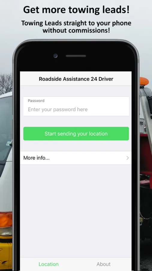 After registration on https://www.roadsideassistance24.com/partner/ enter your password and press "Start sending your location" button. The password was sent via email upon registration.
