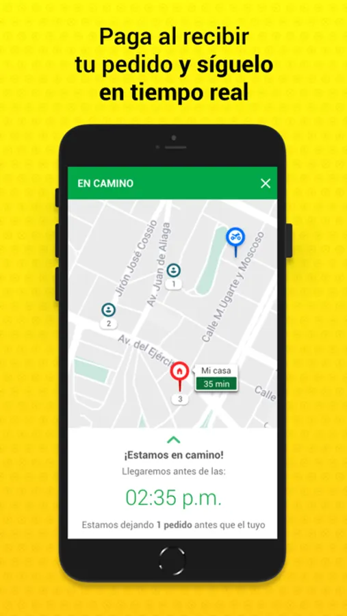 Realiza tu pedido en el app, elige pagar con efectivo o tarjeta**, sigue tu pedido en tiempo real, y recibe tu compra en tu casa, oficina o donde estés. Nosotros te avisaremos cuando el motorizado esté cerca.