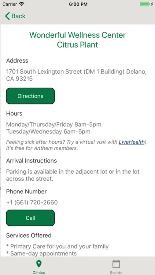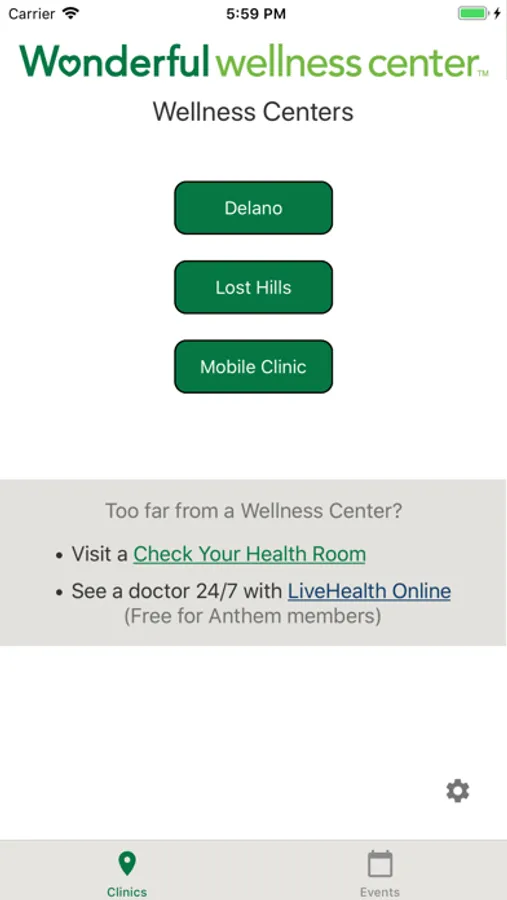 This app provides a convenient way for the 7000+ Wonderful Company employees, spouses and dependents to interact with the company’s health and wellness clinics and keep updated on current wellness events. The app allows the Wonderful family to access hours of operation, services offered, location, and driving directions to any of its 3 wellness centers. The app also allows users to learn about and sign up for wellness events. Wonderful employs a large percentage of field and production workers from rural communities where internet access is limited and mobile applications are a critical resource for information and communication.
