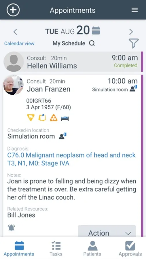Varian Mobile App provides clinical staff secure access from any location to complete clinical workflows including: